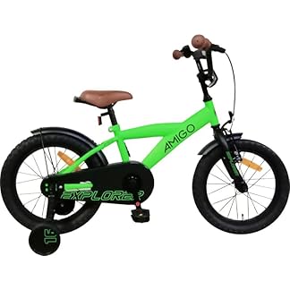 - AMIGO Explorer – Kinderfahrrad – 12/14 / 16 Zoll – mit Handbremse, Rücktritt, Lenkerpolster und Stützräder – ab 3-6 Jahre – Blau/Grün/Schwarz€169,00Produkt kaufen