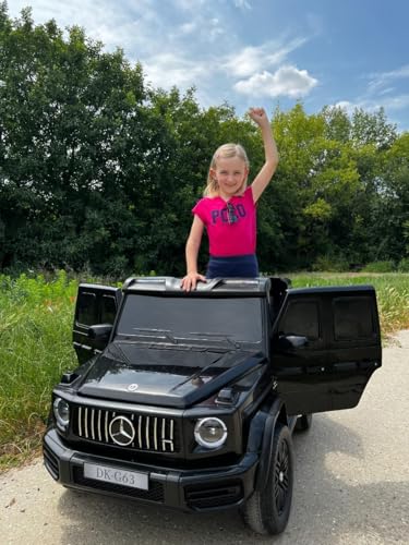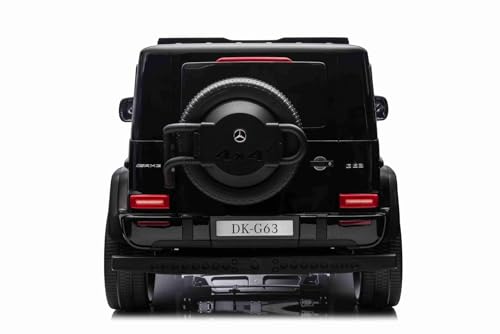 4×4² Kinder Elektroauto 12V 2 sitzer Mercedes AMG G63 G Klasse, schwarz, MP3-Player mit USB/AUX-Eingang, Batterie 12V14Ah, gefederte Eva-Räder, Kunstledersitze, Fernbedienung, Lizenziert
