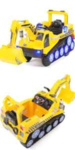 | Sonstiges | Reifen mit Weichgummiring, LED Scheinwerfer, LED Kettenbeleuchtung, Lenkrad mit Sound für Hupe und Musik, SD-Karte, USB-Anschluss, Federung vorne, Soft-Abreise, Funktionsfähige Schaufel, Sicherheitsgurt, Bremsautomatik, Fernbedienung | EVA Vollgummireifen, Türen, Heckklappe zum Öffnen, SD-Karte, USB, MP3, AUX, Sicherheitsgurt, Bremsautomatik, 1 x 12 Volt 10AH, Fernbedienung 2,4 Ghz mit First-Abdruck | Reifen mit Weichgummiring, , Mulde vorne zum Kippen, Bremsautomatik, Vorwärtsgang – Neutral – Rückwärtsgang | Reifen mit Weichgummiring, Batterie 12 Volt 7AH, Fernbedienung 2,4 Ghz mit First-Abdruck, Vorwärtsgang – Neutral – Rückwärtsgang |