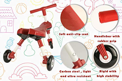 Bequem und gefestigt: Gestell aus Kohlenstoffstahl. Lenker mit 45° Drehbegrenzung für mehr Stabilität beim Drehen. 3 Rollen sorgen für das Gleichgewicht der kleinen Fahrer Mit Stahlrahmen und EVA-Gummirädern, müssen Sie sich keine Sorgen über Pannen oder Wartung machen. Außerdem kann es im Innen- und Außenbereich verwendet werden.