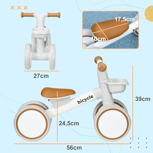Anpassbarer Komfort: Dieses Kinderfahrrad verfügt über einen zweifach verstellbaren Sitz, der sich um 2 cm nach vorne und achtern verstellen lässt und so Ihrem Knirps von 1 bis 3 Jahren passt. Es enthält ungeachtet alledem einen abnehmbaren Korb für Spielzeug und wichtige Dinge.
