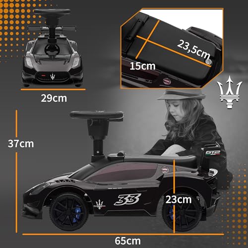 AIYAPLAY Rutschauto, Maserati GT2 Bobby Car Rutschfahrzeug mit Hupe und Musik, Kinderfahrzeug mit Stauraum für 1,5-5 Jahre Kinder 65 x 29 x 37 cm Schwarz