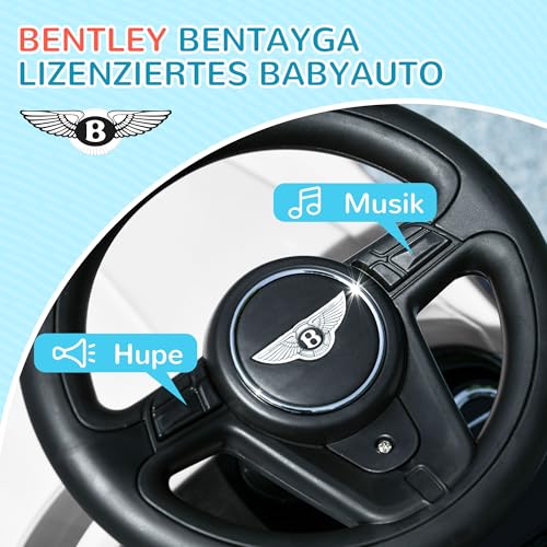 Vielseitiges Design: Das lizenzierte Bentley Bentayga Baby Rutschauto bietet ein anpassungsfähiges 3-in-1 Design, das Ihr Derivat von einem Schiebeauto (12-18 Monate) zu einem Rutschauto (18-36 Monate) begleitet, inklusive abnehmbarer Fußpedale, Eltern-Schiebegriff weiterhin Schutzgeländer.