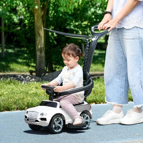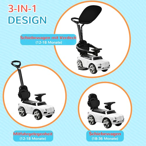 AIYAPLAY Rutschauto mit Schiebestange 3-in-1 Rutschfahrzeug mit Abnehmbar Verdeck und Handlauf, Kinderfahrzeug mit Kippschutz, Hupe, Musik, Stauraum, für 1-3 Jahre Kinder, Weiß