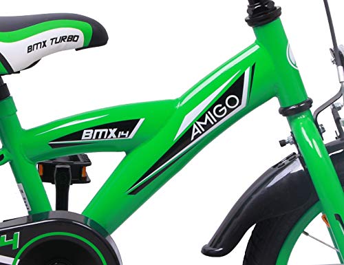 AMIGO BMX Turbo – Kinderfahrrad für Jungen – 14 Zoll – mit Handbremse, Rücktritt, Lenkerpolster und Stützräder – ab 3-4…