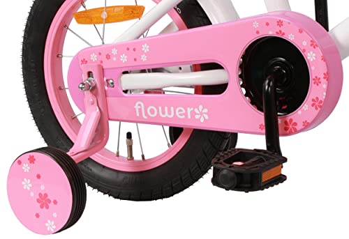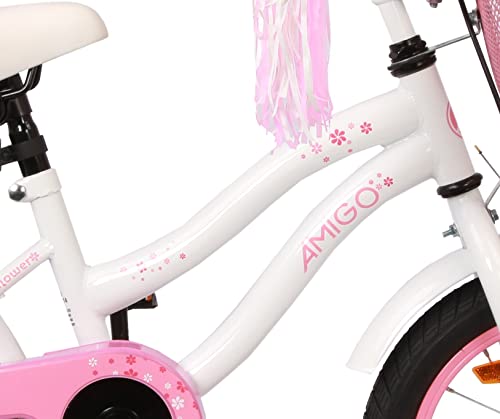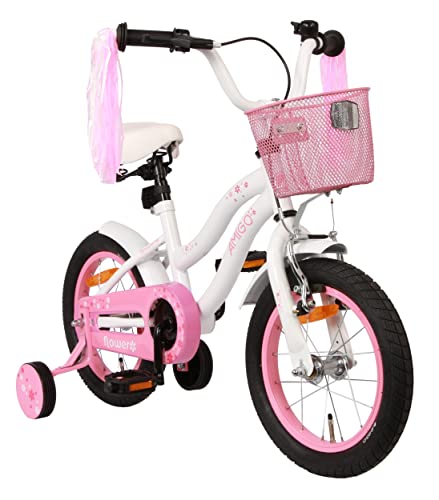 AMIGO Flower – Kinderfahrrad für Mädchen – 14 Zoll – mit Handbremse, Rücktritt, Korb und Stützräder – ab 3-4 Jahre…