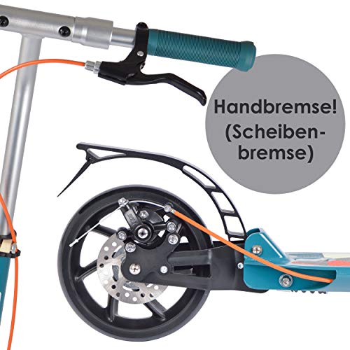 1 KLICK SYSTEM: Durch den praktischen Klappmechanismus mit Schnellspanner wird der Lenker des Kick-Scooter in Sekunden umgeklappt und der große Roller lässt sich platzsparend verstauen. Für Kinder ab 7 und Erwachsene von 120 cm bis 190 cm, bis 100kg