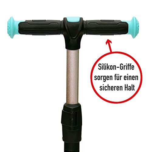 FLEXIBLE HÖHE: Kickroller über 3 Stufen höhenverstellbar, bis 85 cm. So bleibt der Scooter mit wachsenden Kindern auch über Jahre einsatzbereit.
