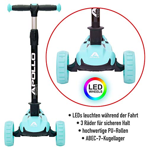 Apollo KidsPro 4 Kinderroller | klappbarer Kinder Scooter, höhenverstellbarer Dreiradscooter | Roller Kinder 3 Jahre Altersempfehlung | Kinderroller 3 Räder mit LED Rollen | Scooter Kinder-gerecht
