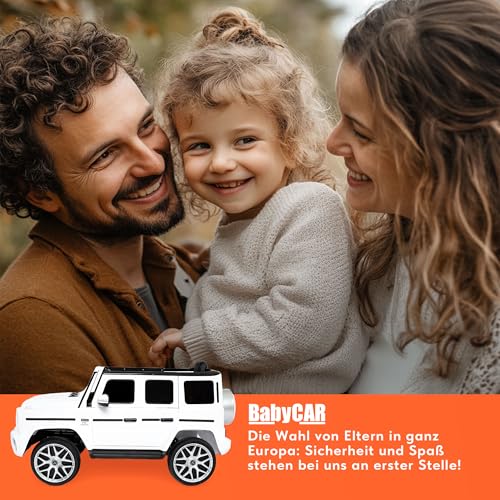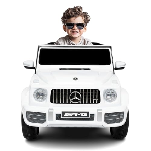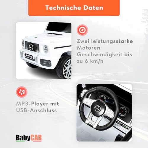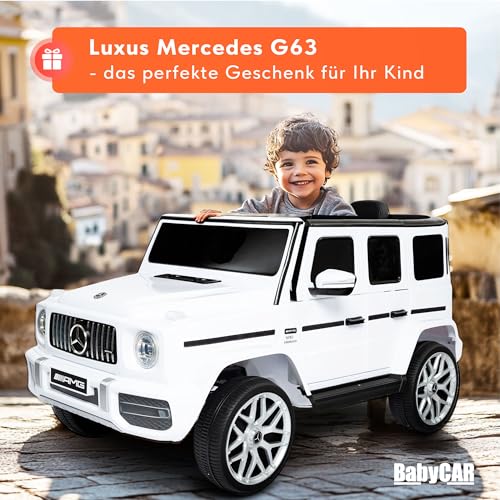 Babycar Mercedes G63 Sportversion AMG (Weiß) Elektroauto für Kinder Offiziell mit Lizenz 12 Volt Batterie mit Fernbedienung 2,4 GHz Türen mit MP3