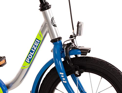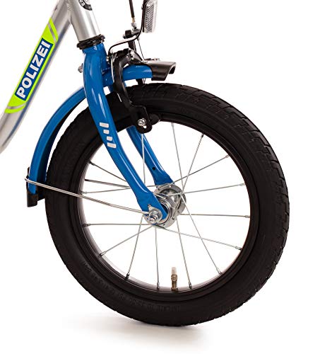 Der Rahmen in U-Regelmäßigkeit kommt im bekannten silber-blauen Polizei-Design. Lenker und Klingel sind farblich optimal geschmackvoll. So kann Ihr Abkömmling-Polizist inert Durch Tatü-Tata losflitzen!
