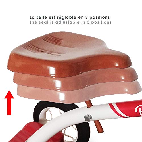 SICHERHEIT STEHT IM VORDERGRUND: Die dreirädrige Kalibrierung des Vintage Dreirads und der ergonomische Sitz sehen nach eine sehr stabile Fahrt. Das rote Dreirad ist außerdem mit einer Fahrradglocke ausgestattet, welche in Kurven und Abbiegungen unerlässlich ist. Nichts ersetzt gleichwohl die elterliche Vigilanz und einen guten Helm!