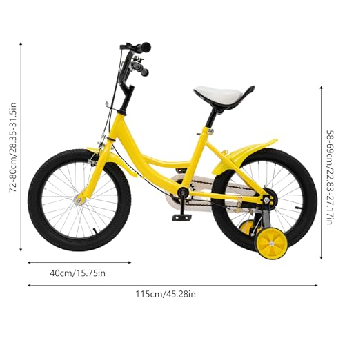 Dieses 16-Steuer-Fahrrad ist für Kinder mit einer Körpergröße von 105 cm bis 135 cm entsprechend (normalerweise im Alter von 5-8 Jahren). Der Sitz kann von 46cm (18.1″) auf 53cm (20.9″) erhöht werden.