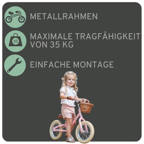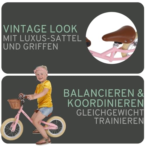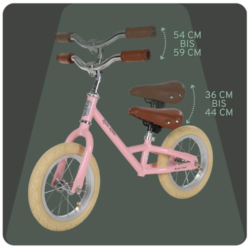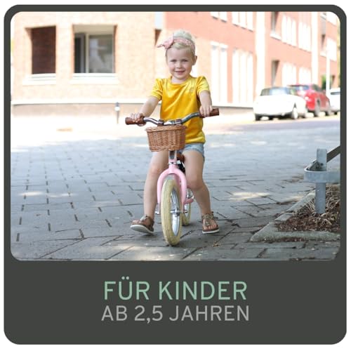 Bandits & Angels Metal Laufrad Retro Rider Mit Weidenkorb Pink ab 2,5 Jahren – Für Jungen und Mädchen – Rosa Balance Bike – Verstellbarer Sattel 36 bis 44 cm – Luftreifen – Luxuriöse Griffe