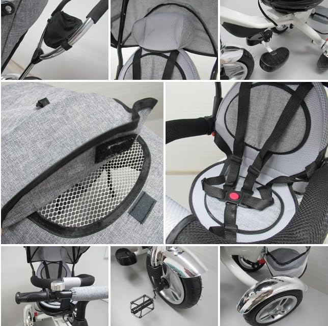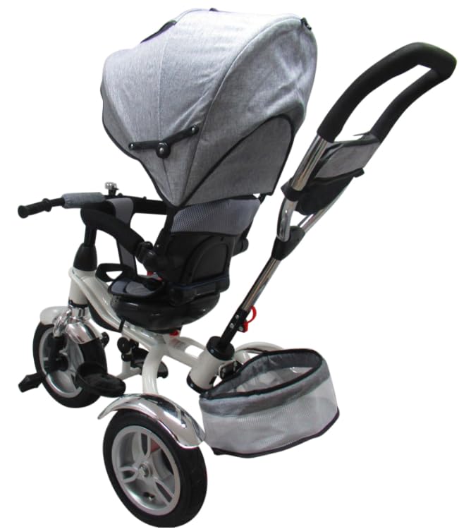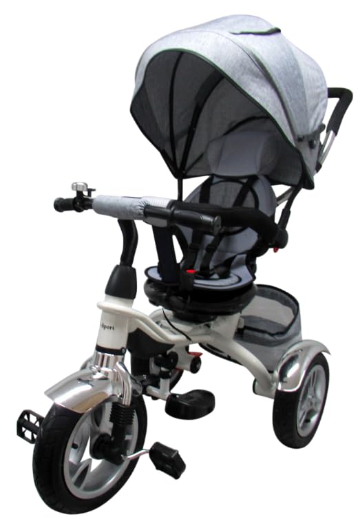 DESIGN: Dreirad mit 360° drehbarem Sitz, faltbarem Sonnenverdeck und praktischem Heckkorb, ideal für Kinder von 1-6 Jahren