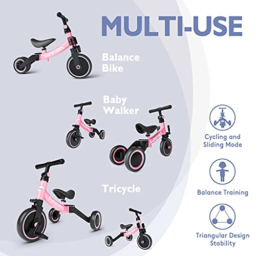 besrey 5 in 1 Laufräder Laufrad Kinderdreirad Dreirad Lauffahrrad Lauflernhilfe für Kinder ab 1 Jahre bis 4 Jahren – Rosa