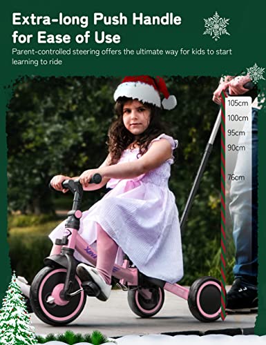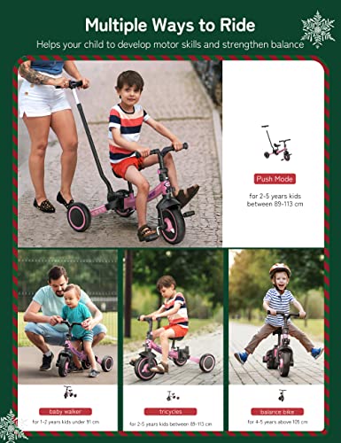 besrey 7 in 1 Kleinkind-Dreirad mit Lenkschiebegriff für 1-5 Jahre, faltbares Laufräder, Kleinkind-Fahrrad mit…