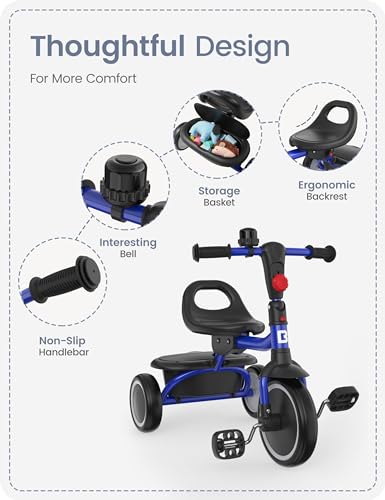 besrey Kleinkinder-Dreirad mit Klingel, Kinderdreirad Alter 18 Monate bis 5 Jahre, Kleinkinderfahrrad für 2-4-Jährige, Geschenke & Spielzeug für Jungen & Mädchen, Blau