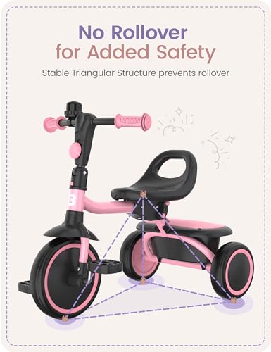besrey Kleinkinder-Dreirad mit Klingel, Kinderdreirad Alter 18 Monate bis 5 Jahre, Kleinkinderfahrrad für 2-4-Jährige, Geschenke & Spielzeug für Jungen & Mädchen, Rosa