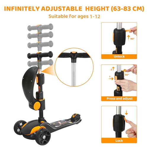 【Begleiten Sie Kinder zum Wachstum】 Der Kinderroller hat 5 verstellbare Höhen, geeignet für Kinder unterschiedlichen Alters. Mit einem abnehmbaren Sitzdesign, können Sie beim Rutschen sitzen oder stehen. Begleiten Sie Ihr Kind zum Wachstum und erhöhen Sie die Lebensfreude.