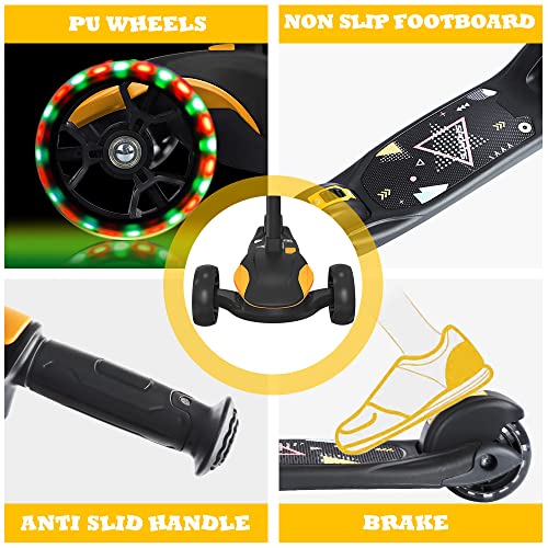 BremToy Kinder Roller von 1–12 Jahren, Stufenlose Höhenverstellung, Kinderroller mit Abnehmbarem Sitz, 3 PU LED-Lichträder, Maximale Belastung 50 kg, Geschenke für Kinder,Gelb