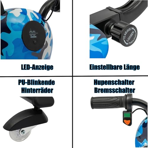 【Einzigartiges Design】: Die Vorderseite des elektro scooter kann automatisch zwischen drei Farben und vier Ausdrücken umgeschaltet werden, was das Interesse und die Leidenschaft der Kinder voll fördert und ihre kindliche Unschuld bewahrt.