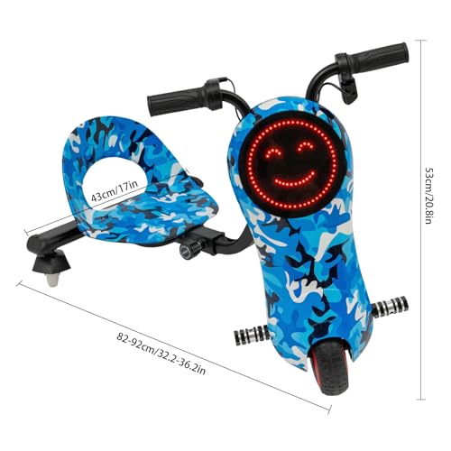 【Verstellbare Länge】: Um den Bedürfnissen unterschiedlich großer Kinder gerecht zu werden, kann die Länge des Drift karts mittels einer zentralen Befestigungsschraube verstellt werden. Die Länge des Fahrzeugs kann von 82 cm bis 92 cm eingestellt werden.