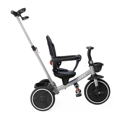 Das 4in1 Trike von Chicco folgt dem Wachstum Ihres Kindes Stückchen für Stückchen. Der robuste Metallrahmen und die gummibeschichteten Räder sehen nach besseren Halt. Es verfügt über ein 4-Punkt-Gurtsystem (abnehmbar) und eine Feststellvorrichtung; die Bremse am Hinterrad blockiert beide Räder gleichzeitig für zusätzliche Sicherheit. Die abnehmbare, in 2 Positionen höhenverstellbare Lenkstange ermöglicht es den Eltern, das Dreirad zu steuern. Das abnehmbare Verdeck mit verstellbarer Neigung bietet den perfekten Abschirmung vor Sonne und Wind. Der Sitz ist invertierbar: in Richtung der Eltern oder in Richtung der Straße. Die Sitzfläche ist mit einem eleganten Jeansstoff gepolstert, der für zusätzlichen Komfort sorgt. Die freien Pedale und die klappbare Fußstütze sind für jüngere Kinder gedacht. Das Dreirad lässt sich leicht zusammenklappen und bequem transportieren. Mit Korb achtern und vorne, Getränkehalter und einem Haken zum Abstützen einer Tasche. Abmessungen: 96x49x100 cm