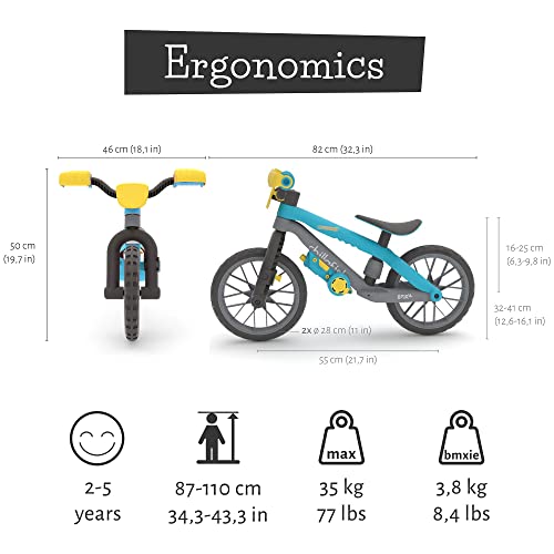 Einstellbarer Sitz und empfohlene Größe: Der BMXie-Sitz ist von 32 bis 41 cm (12,5-16 Aufschlag) ohne Werkzeug verstellbar und passt für Kinder mit einer Größe von 80-120 cm.
