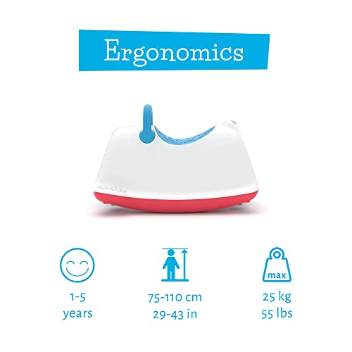 WACHS-MIT-MIR IN SITZHÖHE: Schieben Sie einfach den Sitz von unten heraus, kippen Sie ihn um und Sie haben einen etwas höheren Sitz. Niedrigste Sitzposition (im Schaukelpferd-Modus): 9 Zoll / 24 cm und höchste Sitzposition (im Rutschauto-Modus): 13 Zoll / 34 cm