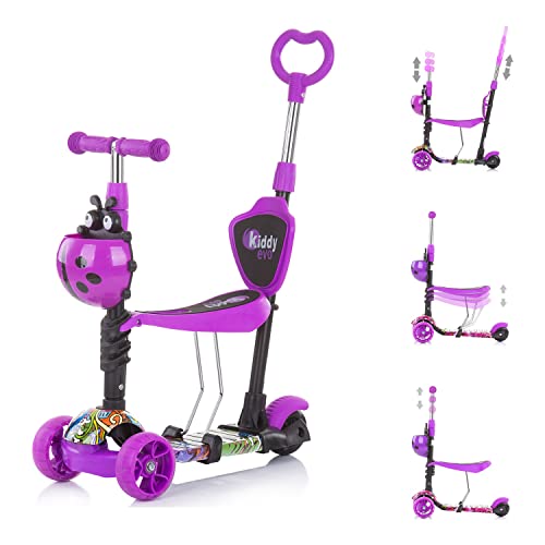 Mit dem Kinderroller Kiddy Evo 3 in 1 von Chipolino mit drei Rädern wird Ihr Nachwuchs den nächsten Spaziergang genießen. Er verfügt über einen Sitz, sodass er denn Laufrad verwendet werden kann. Möchte Ihr Nachwuchs nicht mehr selbst am Steuer sein, können Sie den Roller mit Hilfe der Schiebestange steuern. Sitz und Lenker lassen sich in drei Höhenpositionen eichen, wodurch der Scooter mit Ihrem Nachwuchs mitwächst. Möchte Ihr Nachwuchs Roller am Steuer sein, wird der Sitz einfach abgenommen und in der Tat kann die Fahrt beginnen. Die Vorderräder sind mit LED-Lichtern versehen, was den Roller optisch zum Highlight macht.