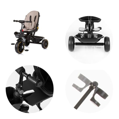 Das Tricycle Max Sport 2 in 1 von Chipolino wird Ihr Nachwuchs ab 18 Monaten bis zu einem Maximalgewicht von 25 kg begleiten. Der Sitz ist um 360° drehbar und verfügt in beiden Richtungen über eine Liegeposition. Der Schiebegriff lässt sich in zwei Höhenpositionen verstellen, sodass vulgo Sie den Spaziergang genießen können. In den Körben ist ausreichend Platz für Proviant und kleines Spielzeug. Sobald Ihr Nachwuchs größer ist und bloß fahren kann, lassen sich das Sonnendach, der Schiebegriff und der Frontbügel abflauen. Ab gleich darauf kann ihr kleiner Liebling selbstständig auf Entdeckungsfahrt gehen.