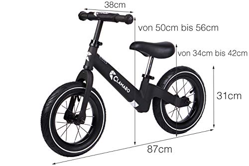 Clamaro ‚Roadstar‘ 12 Gebühr Kinder Lauflernrad mit Allerdings 3,6 kg Gewicht (Magnesium-Aluminium Rahmen), höhenverstellbarem Sitz und Lenker, Luftreifen mit Speichenfelgen