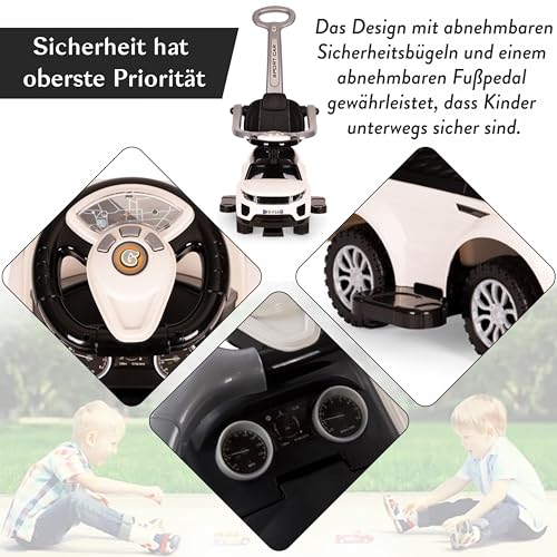 [MULTIFUNKTIONALES DESIGN] – Unser 3-in-1 Lauflernauto kann als Rutscherfahrzeug, Schiebewagen oder Lauflernwagen verwendet werden. Die abnehmbaren Teile, wie die Schiebestange und Armlehnen, machen es zu einem flexiblen Spielzeug, das mit dem Kind wächst und lange Freude bereitet.