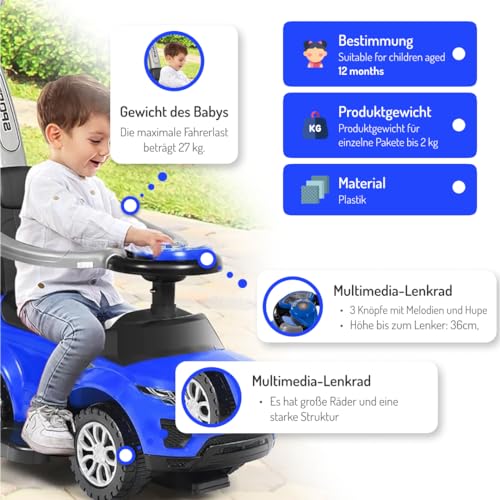 [MULTIFUNKTIONALES DESIGN] – Unser 3-in-1 Lauflernauto kann als Rutscherfahrzeug, Schiebewagen oder Lauflernwagen verwendet werden. Die abnehmbaren Teile, wie die Schiebestange und Armlehnen, machen es zu einem flexiblen Spielzeug, das mit dem Kind wächst und lange Freude bereitet.