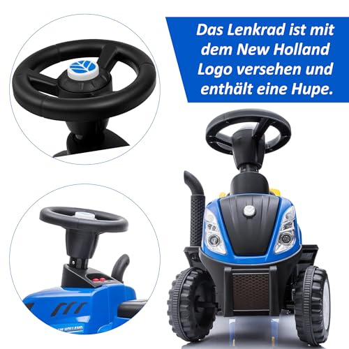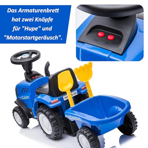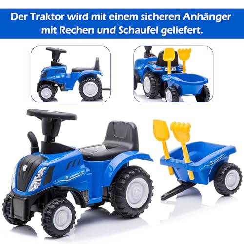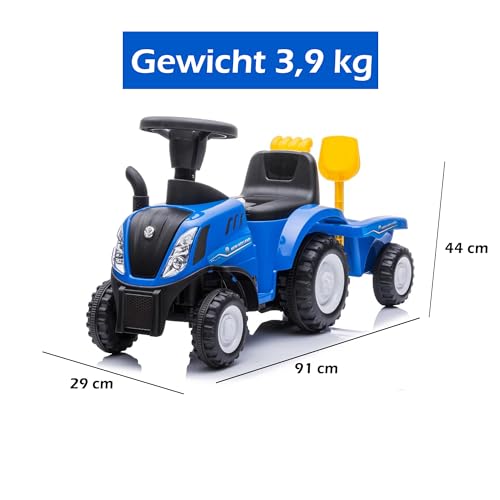 COIL Traktor New Holland Rutschauto mit Anhänger – Lizenzierter Traktor Buggy mit und Schaufel – Hochwertiges Kunststoff-Spielzeug – Traktor Mit Anhänger – Playmobil, Traktor Zum Draufsitzen (Blau)