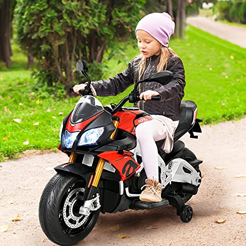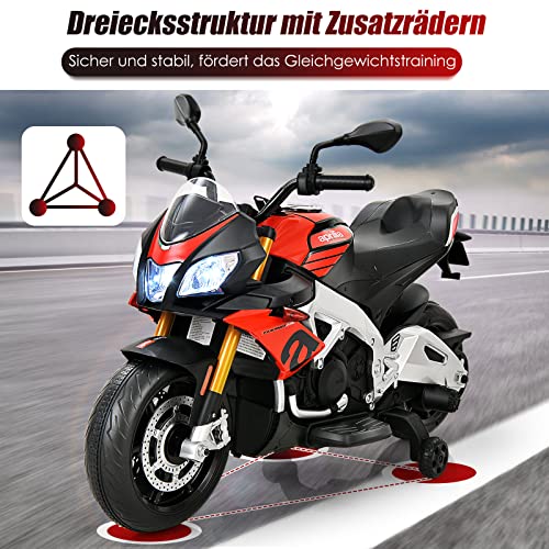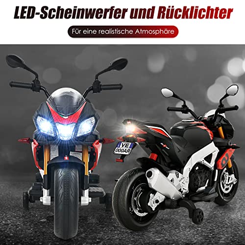 COSTWAY 12V Aprilia Elektro Motorrad mit Musik und Scheinwerfer, Kindermotorrad mit Stützrädern, Elektromotorrad inkl…