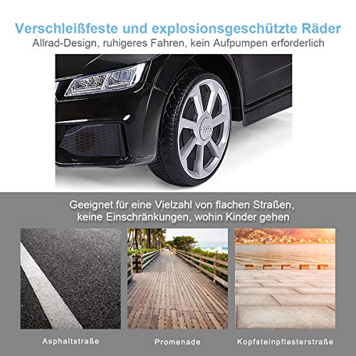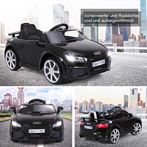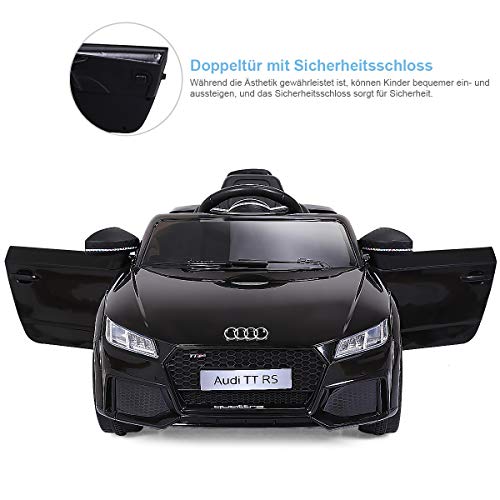 COSTWAY 12V Audi Kinderauto mit 2,4G-Fernbedienung, 3 Gang Elektroauto 2,5-5km/h mit MP3, Hupe, Musik und LED-Leuchten, Kinderfahrzeug für Kinder von 3-8 Jahren (Schwarz)