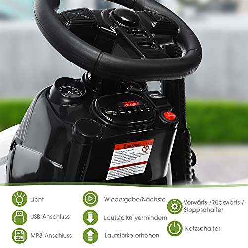 【Stundenlange Unterhaltung】Der Musikplayer, die Hupe und der MP3-Player Acht geben Hintergrundmusik derweil der Fahrt. Kinder können die Lautstärke und die Art des Tons selbst über die Knopfe adjustieren. Scheinwerfer & Warnleuchten bieten mehr Spaß.
