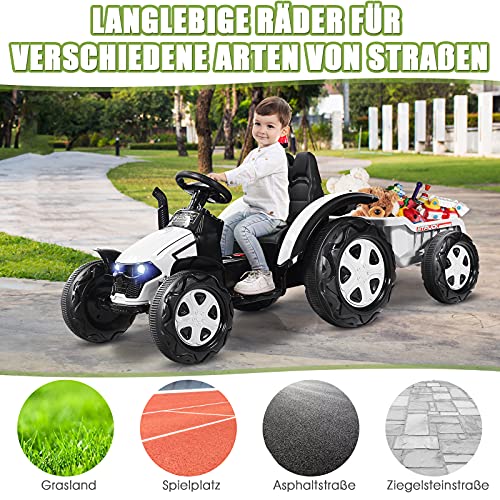 COSTWAY 12V Elektro Traktor für Kinder mit abnehmbarem Anhanger und 2,4G Fernbedienung, Aufsitztraktor 3-8 km/h mit…