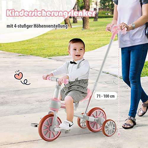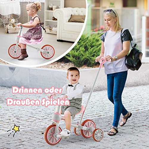 COSTWAY 4 in 1 Kinder Dreirad & Laufrad & Balance Bike & Schiebeauto mit verstellbarem Schiebegriff und abnehmbaren Pedalen,für Kinder ab 1 Jahre