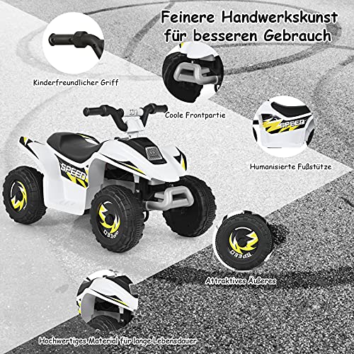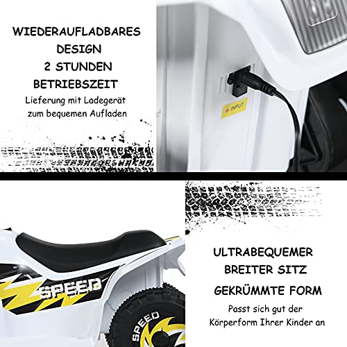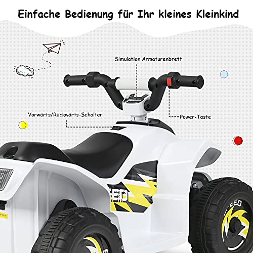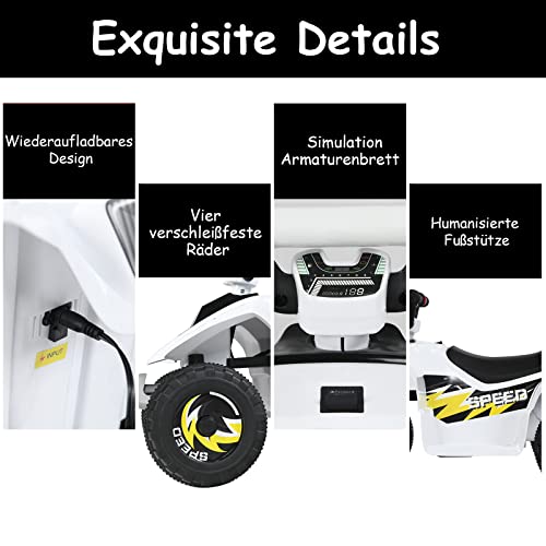 【Leicht zu Abgaben】Zum Abreise kann den Anschalteinrichtung genutzt werden. Spross kann den Elektro Quad leicht steuern, um vor- und rückwärts zu chauffieren oder anzuhalten, indem er die Taste drüken.