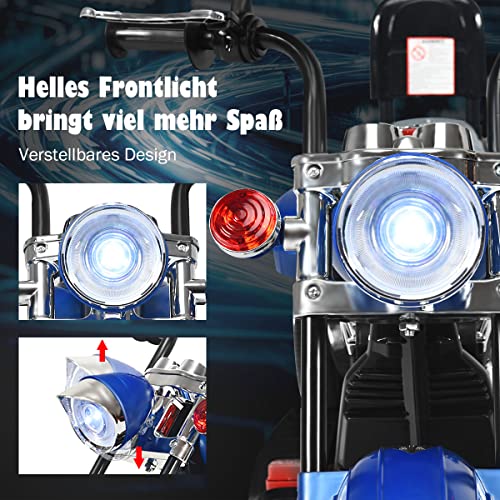 【Verstellbare Scheinwerfer & Sound】Ausgestattet mit Scheinwerfern kann das Kinder Motorrad alias bei Dunkelheit verwendet werden. Diese lassen sich in Höhe und Richtung gleichsetzen. Zudem sorgt die Sound und Hupe für noch mehr Spaß beim Fahren.