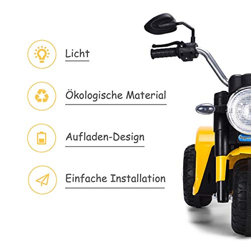 COSTWAY 6V Kinder Elektro Motorrad mit Hupe und Scheinwerfer, Dreirad Kindermotorrad 3-4 km/h, Elektromotorrad für…