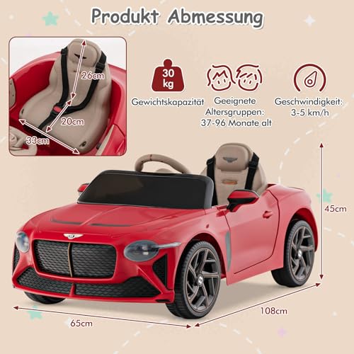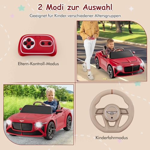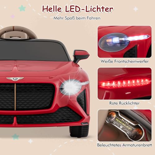 COSTWAY Bentley Elektroauto für Kinder, 12V Kinderfahrzeug mit Fernbedienung & Licht & Musik & USB, Kinderauto Elektro, Elektrofahrzeug für Kinder ab 3 Jahren (Rot)