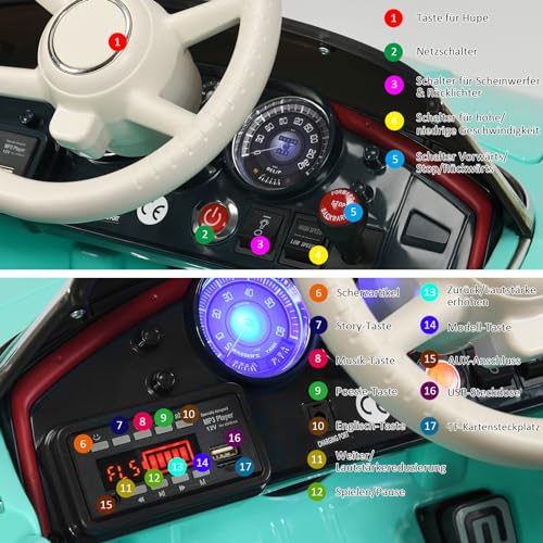Multifunktional, mit Scheinwerfern, Hupe, MP3, Musik, Geschichten und Lautstärkeregler