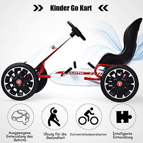【Echte Fahrerfahrung】 Das pedalbetriebene Go Kart erfordert keine komplizierte Bedienung. Alles was getan werden muss ist, die Pedale vorwärts oder rückwärts zu bewegen, wobei die Richtung mit dem echten Lenkrad eingestellt werden kann. Die Handbremse auf der rechten Seite hilft dem Benutzer, das Auto kontrolliert und stabil anzuhalten. Ihre Kinder werden die realistische und aufregende Fahrerfahrung unheimlich genießen!