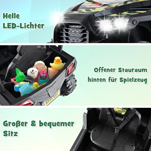 【Leistungsstarke Doppelmotoren und Akku】Dieses Elektrofahrzeuge mit 2 starken 24V-Motoren ist für aufregende Fahrten konzipiert und die 3 Geschwindigkeiten führen zu einer flachen Lernkurve. Bei voller Ladung bietet der Akku robuste 1-2 Stunden Spielzeit.