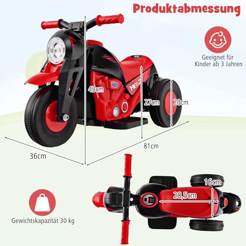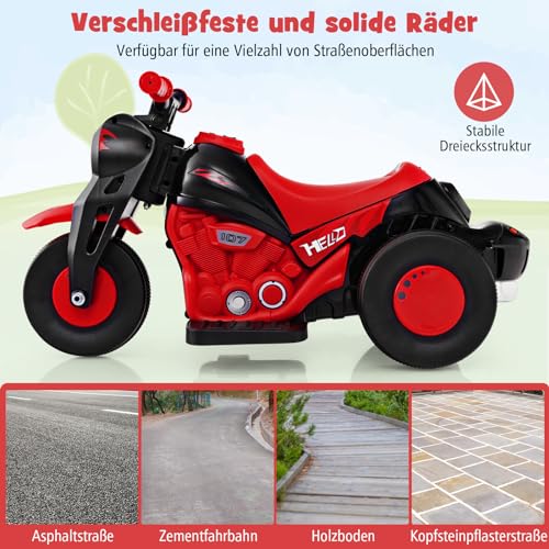 COSTWAY Kinder Motorrad, mit Seifenblasenmaschine, 6V Elektro Motorrad mit Musik und LED Scheinwerfer, Dreirad Kindermotorrad 2,5-3 km/h, Elektromotorrad für Kinder ab 3 Jahren (Rot)