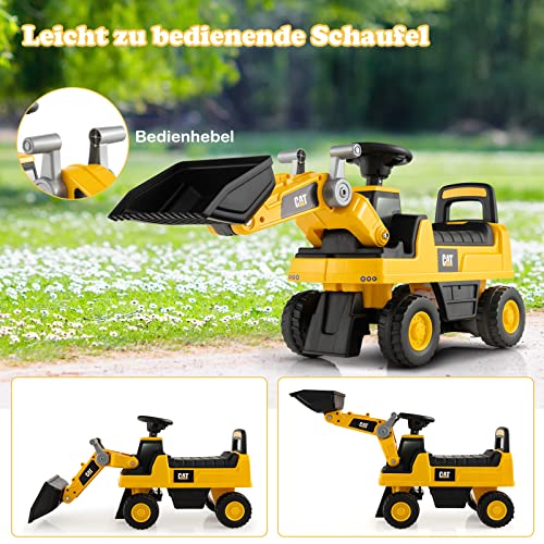 COSTWAY Kinder Sitzbagger mit Stauraum unter dem Sitz, Kinderbagger mit Hupen und Verstellbarer Schaufel, Sandbagger für Kinder ab 1 Jahr